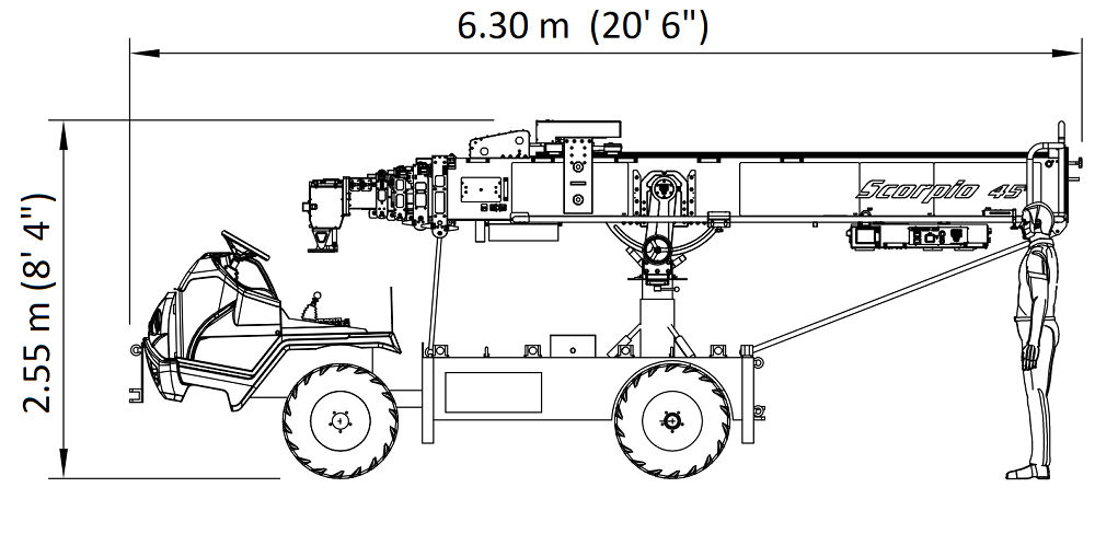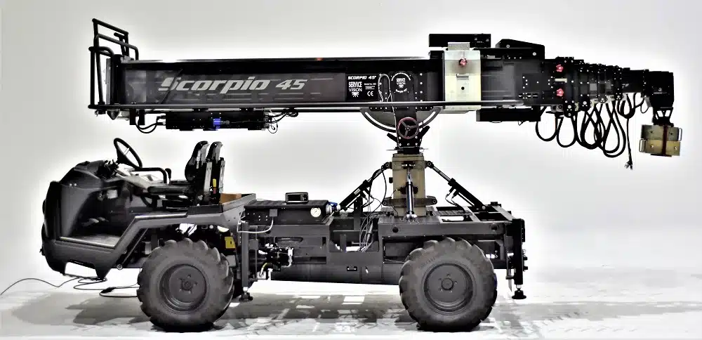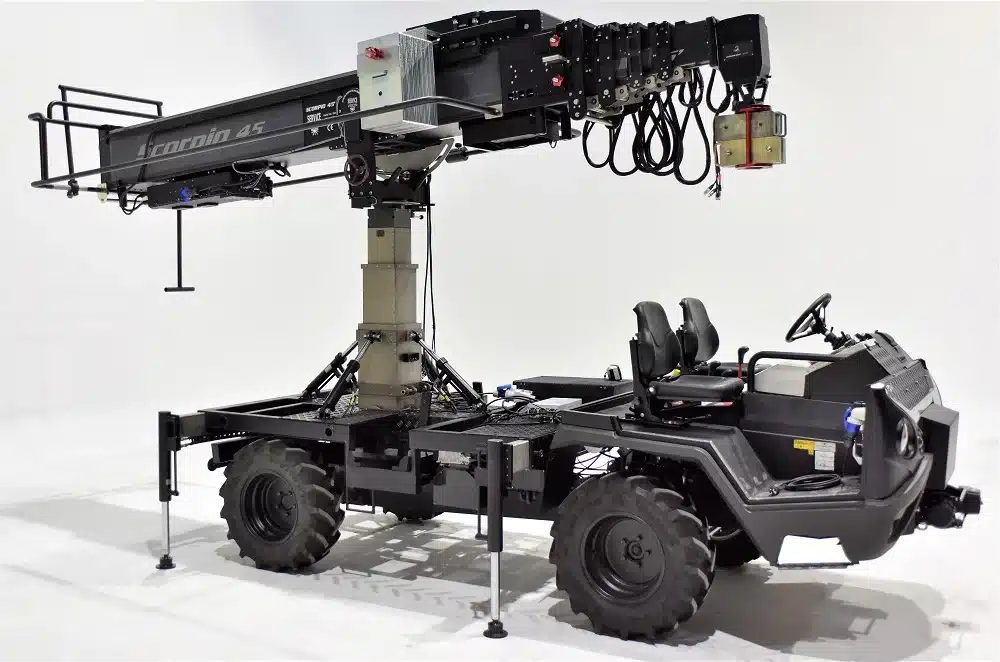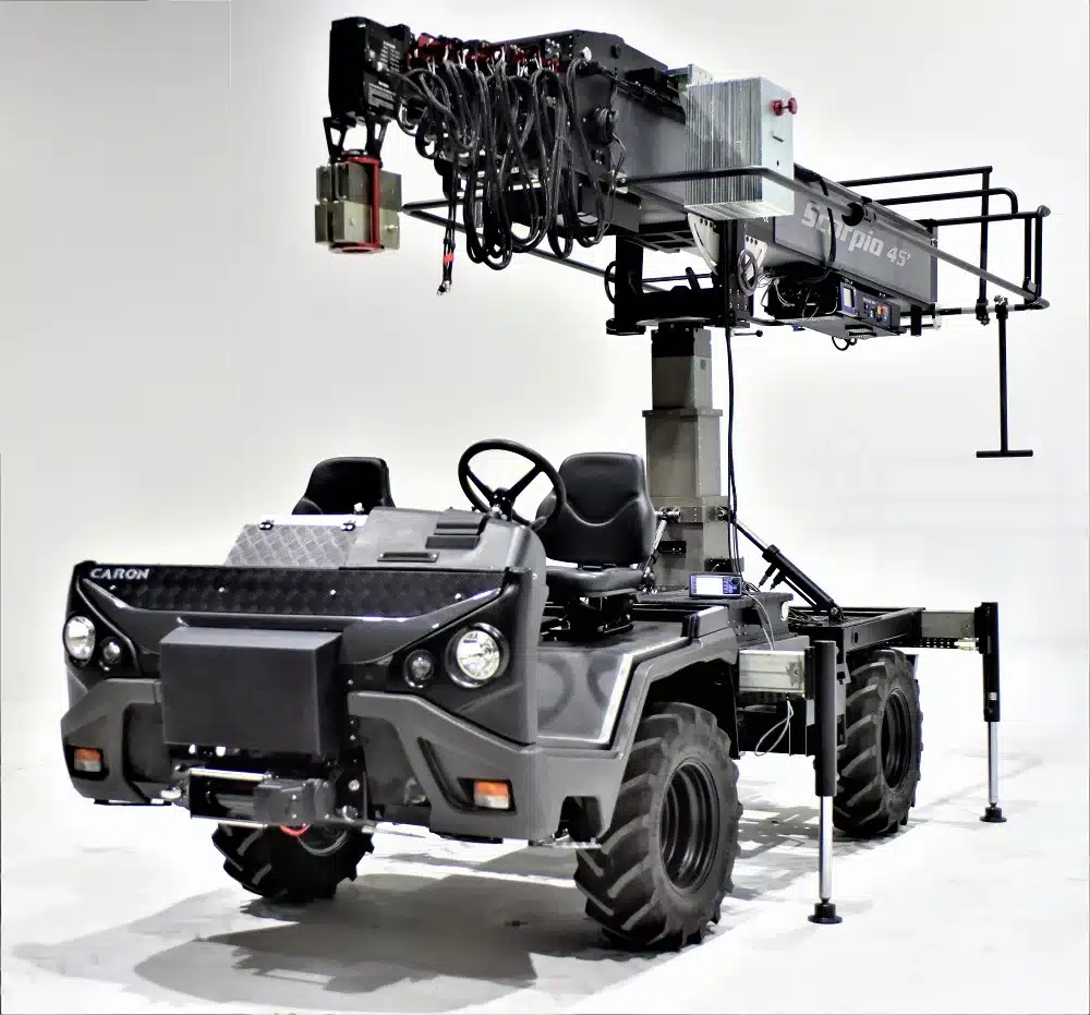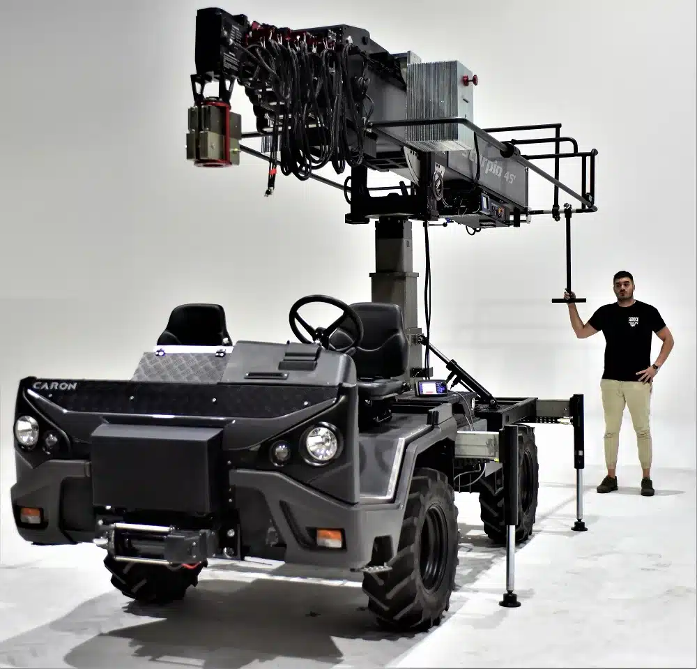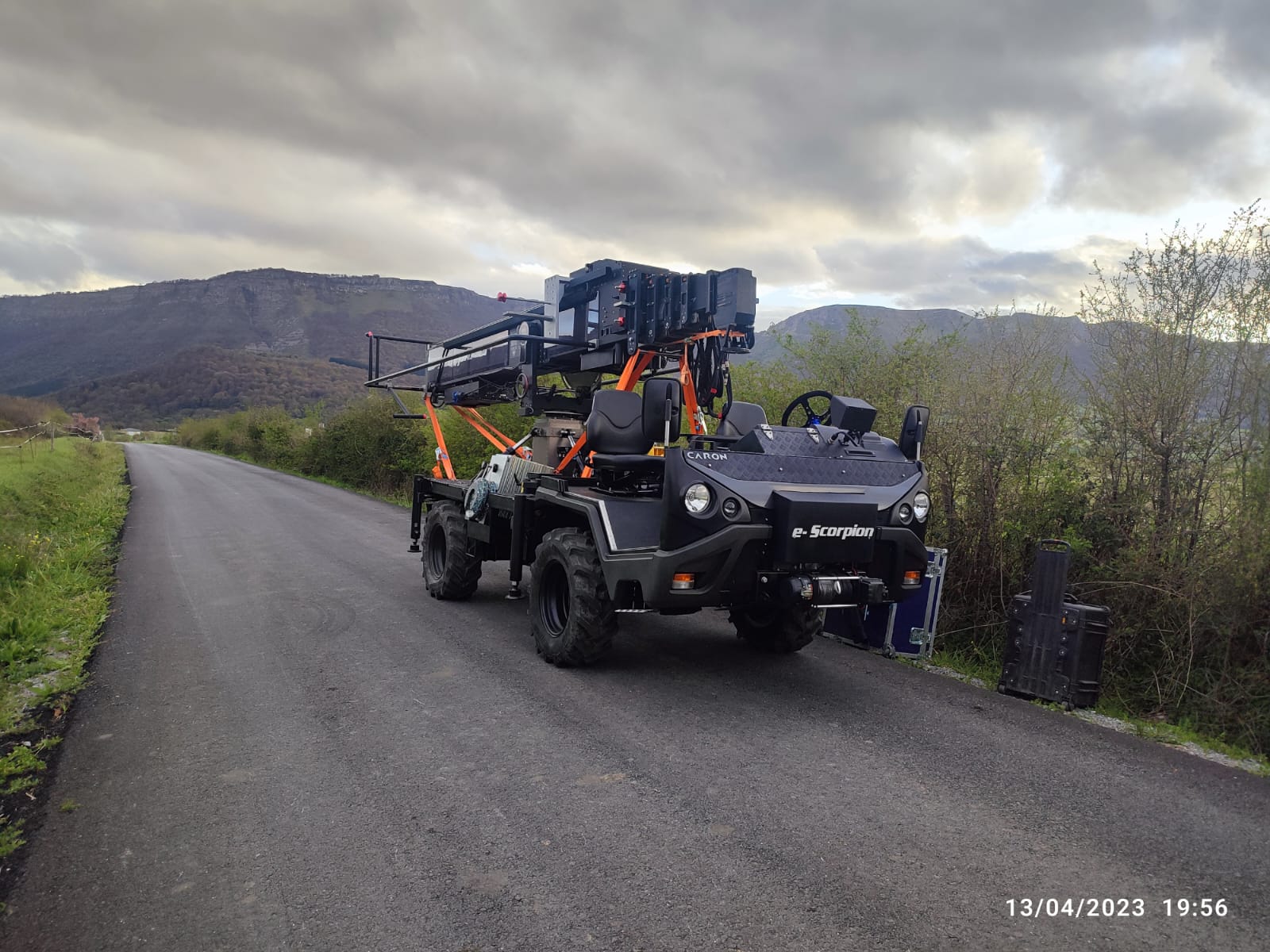 The e-Scorpion is a compact all-terrain electric vehicle designed to carry the Scorpio 45’ or the Scorpio 38’ to hard-access locations or any other location where the noise and the smoke emissions are not allowed. It has been designed considering the compatibility with the Scorpio equipment and the comfort of the technician, the operator and the driver.